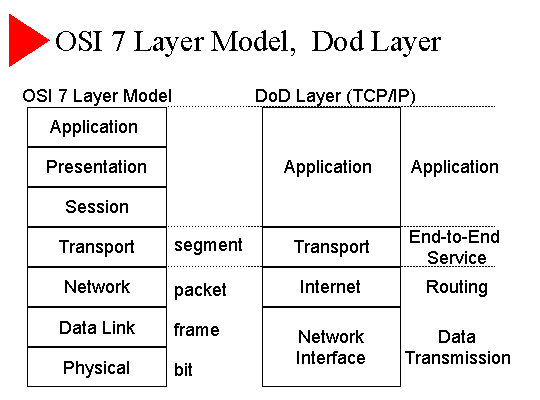 - OSI 7 Layer Model DoD Layer (TCP/IP)